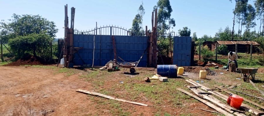 Wir haben ein Stück Land geleast und wollen dort eine Schule bauen. In unseren gemieteten Räumen ist der Platz sehr begrenzt. An der Straßenseite des Grundstücks wurde mit dem Zaunbau begonnen.